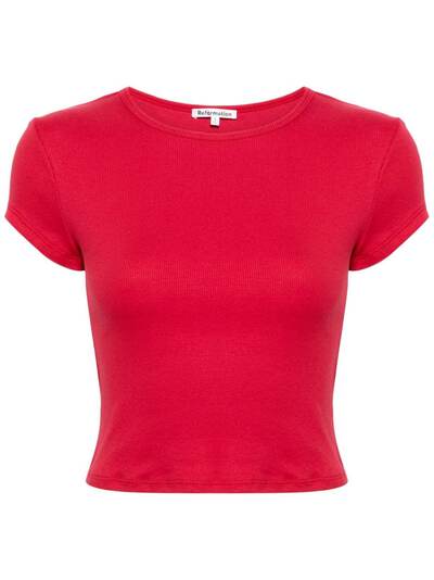bright red organic cotton blend stretch-jersey cropped round neck short sleeves straight hem