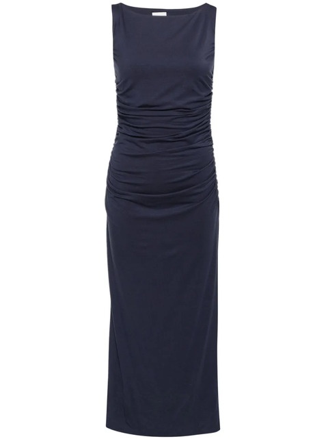midnight blue stretch-jersey boat neck sleeveless ruched detail straight hem