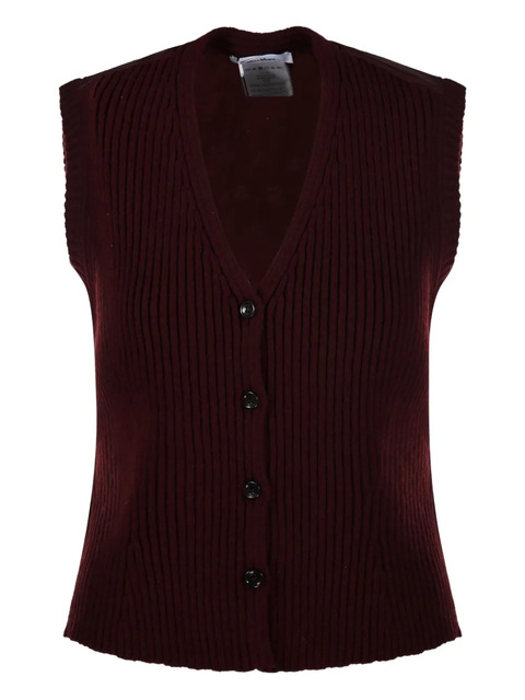 red ribbed knit V-neck front button fastening sleeveless