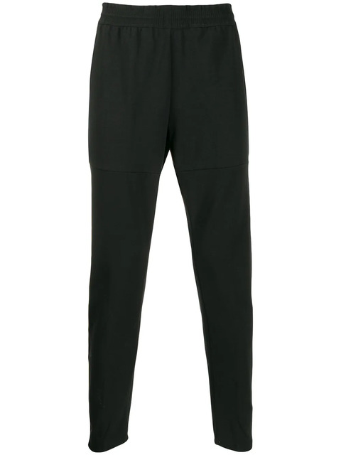 Sportswear giant Nike was founded in 1964 and named after the Greek Goddess of Victory. With a focus on progressive design and technical construction, the label is instantly recognisable thanks to the iconic swoosh logo and Just Do It slogan. These black cotton blend elasticated waist track pants from Nike feature side pockets, a signature Nike swoosh and a straight leg.