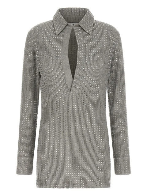 grey rhinestone appliqué V-neck long sleeves rear logo