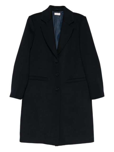 navy blue wool blend front button fastening notched lapels long sleeves wide welt pockets