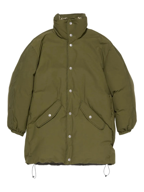 khaki green high neck snap button fastening welt-flap pockets back-neck logo print