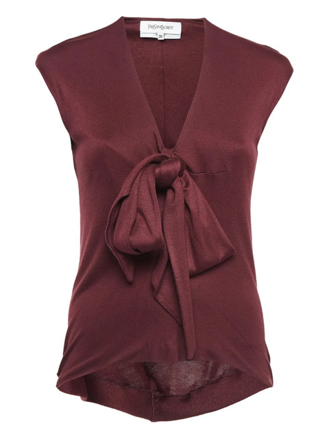 Saint Laurent Pre-Owned bow-detail V-neck top - 31299270 (LPN358878)