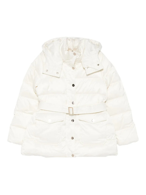 white adjustable waist belt classic hood front flap pockets front press-stud fastening quilted design