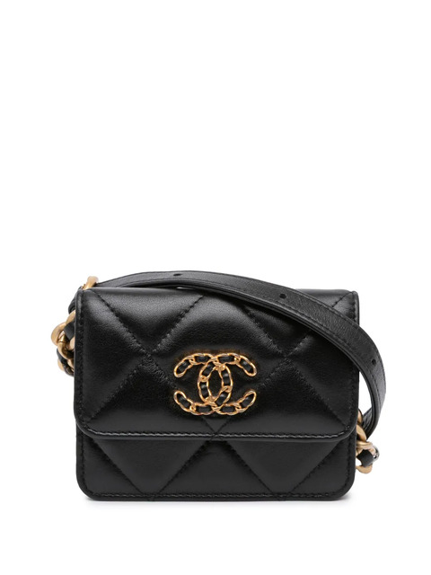 CHANEL Pre-Owned 2021 Quilted Lambskin 19 Flap Coin Purse With Chain crossbody bag - 32325653 (LPN359139)