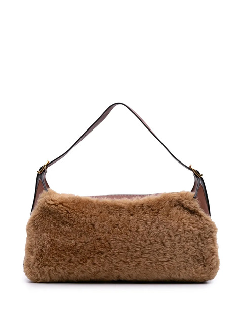 shearling body adjustable flat leather top handle top zip closure brown Serial Number: S-SL-3291 This item has no inclusions. Condition: EXCELLENT. This previously owned item is in near-perfect condition with no signs of damage or use. Please refer to the photos on this product page for a detailed view of the item, including any damages declared.