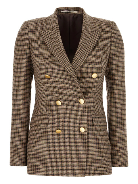 hazelnut and black double-breasted peak lapels flap pockets gold-tone buttons