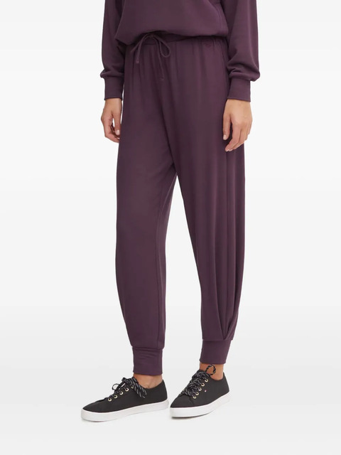 dark purple embroidered logo drawstring fastening elasticated waistband side seam pockets elasticated cuffs
