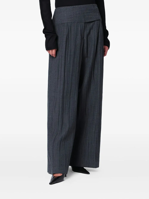 grey pleated design wide leg high-waisted front concealed fastening
