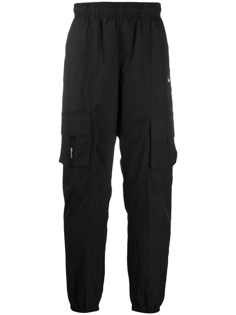 black logo print to the side elasticated waistband elasticated ankles loose fit two front flap pockets