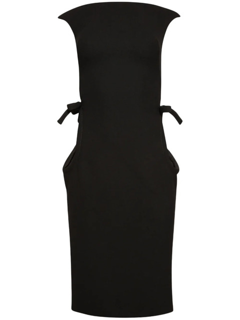 black concealed rear zip fastening boat neck knot detailing cap sleeves