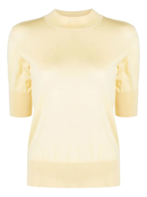 yellow cashmere short sleeves round neck straight hem