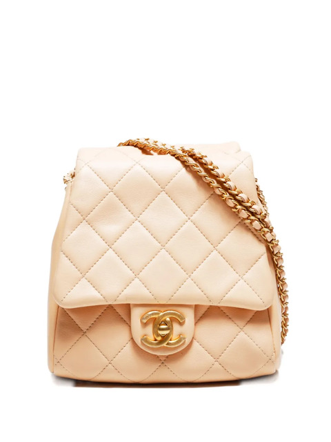 2019 beige 27844652 quilted gold-tone hardware chain strap flap closure lambskin Condition: GOOD. This previously owned and used item is in good condition with minimal signs of use. This may include fading of material or plating and scratches.