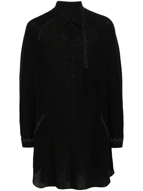Yohji Yamamoto zigzag-embroidery linen shirt - 22984936 (LPN360096)