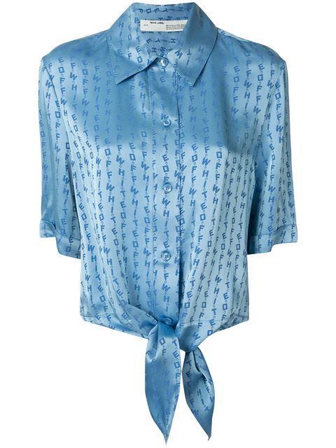 Ready to tie the knot? This logo baseball knot blouse from Off-White looks like the perfect match. "Happily ever after" worthy. Featuring an all-over logo print, a knot detail, half sleeves, a classic collar and a front button placket.