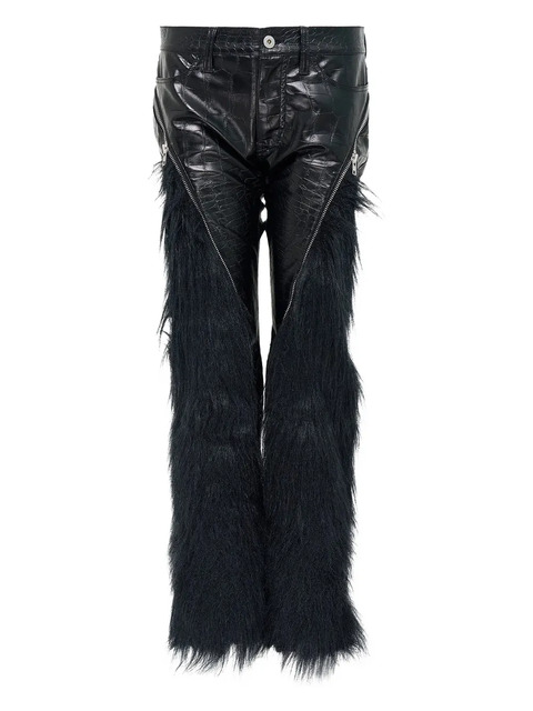 Junya Watanabe crocodile-effect fur-trimmed trousers - 31991954 (LPN360323)