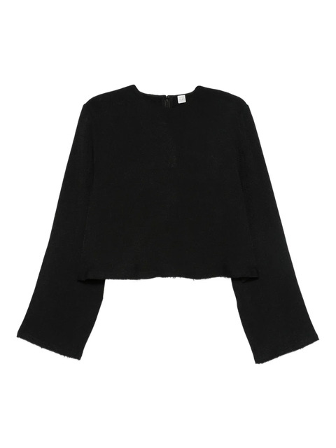 black round neck long sleeves raw hem cropped