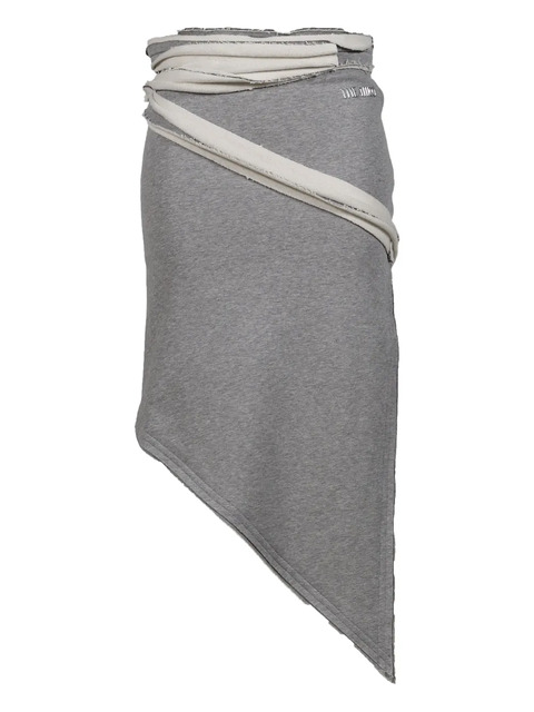 grey asymmetrical hem frayed edges wrap-around effect cotton