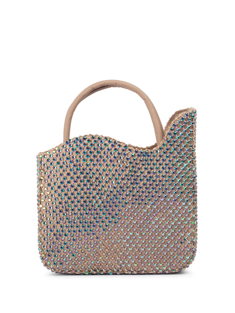 beige rhinestone embellishment two top handles asymmetric design main compartment