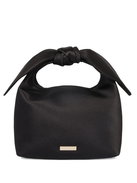 black top handle knot detail chain shoulder strap rectangular plaque open top