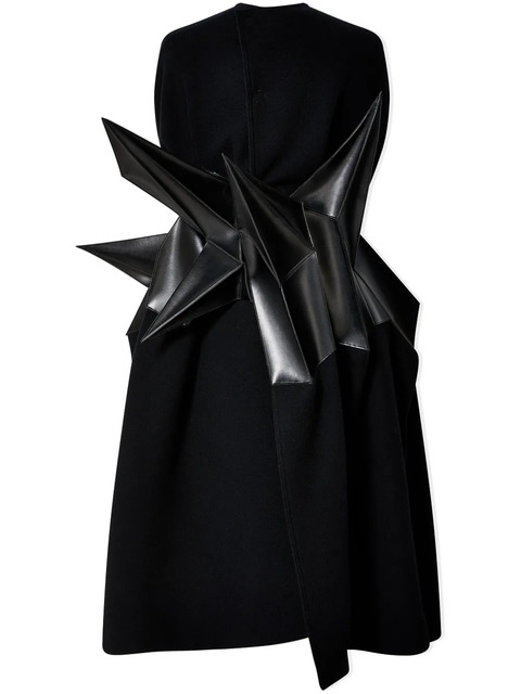 black wool-alpaca wool blend faux-leather contrast panelling collarless sleeveless open back straight hem