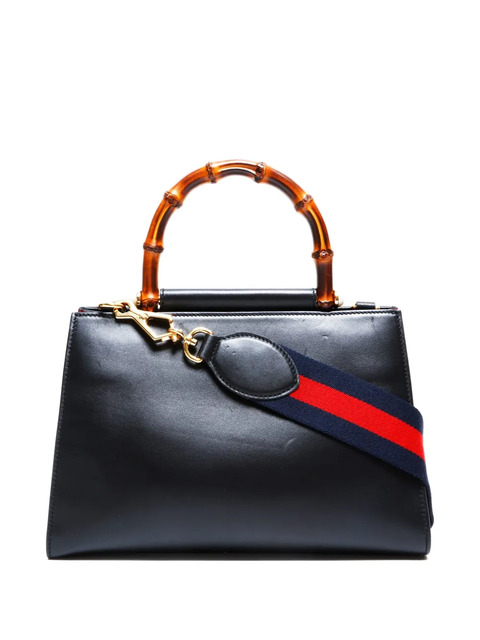 2016-2025 black bamboo top handle detachable shoulder strap gold-tone hardware Condition: GOOD. This previously owned and used item is in good condition with minimal signs of use. This may include fading of material or plating and scratches.
