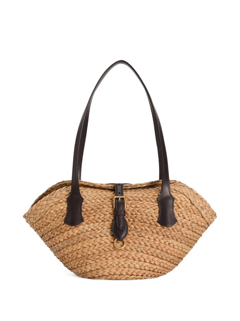 beige woven design top handles buckle detail gold-tone hardware ring detail