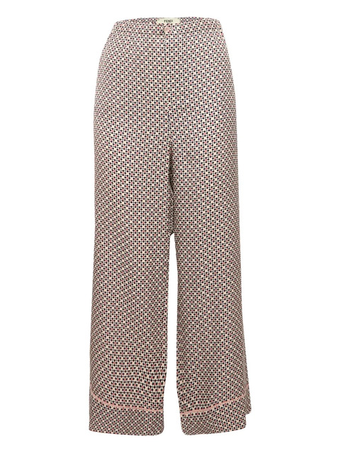 pink/multicolor silk geometric print wide leg Condition: GOOD. This previously owned and used item is in good condition with minimal signs of use. This may include fading of material or plating and scratches.