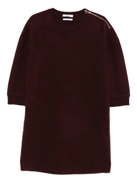 burgundy round neck short sleeves zip detail ribbed cuffs and hem