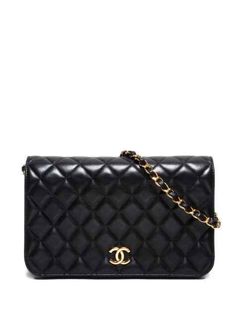 1996 black quilted chain strap gold-tone logo flap top internal zip pocket