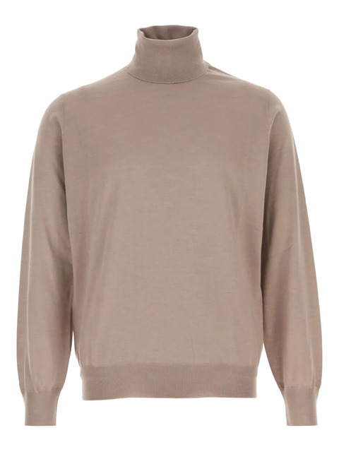 light brown cashmere-silk blend ribbed cuffs and hem roll neck