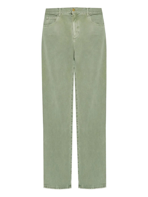 sage green denim five-pocket styling button fly fastening cotton belt loops