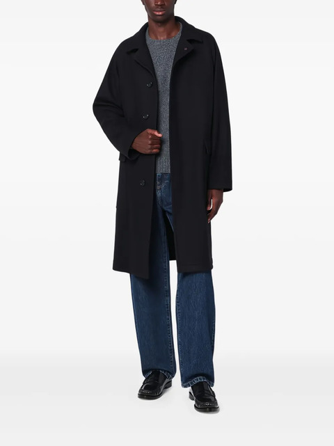 black wool blend front button fastening notched lapels long sleeves side flap pockets