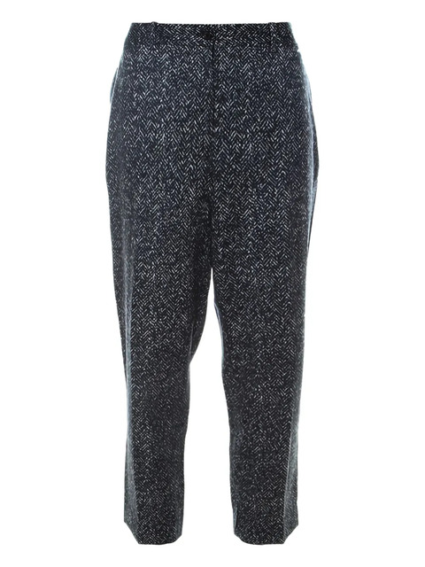 2024 grey herringbone pattern wool material subtle flecks throughout straight leg trousers Condition: EXCELLENT. This previously owned item is in near-perfect condition with no signs of damage or use.