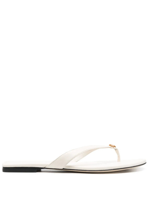 ivory white calf leather gold-tone logo plaque branded insole slip-on style thong strap round toe flat sole