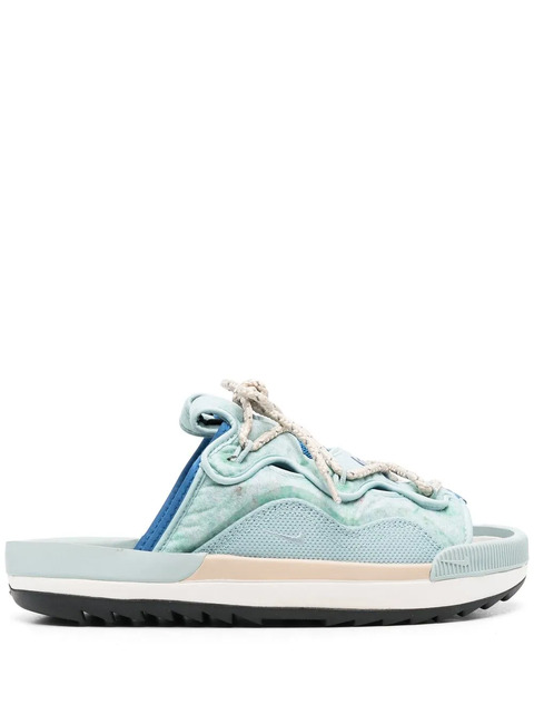 light blue slip-on style front lace-up fastening open toe branded insole flat rubber sole