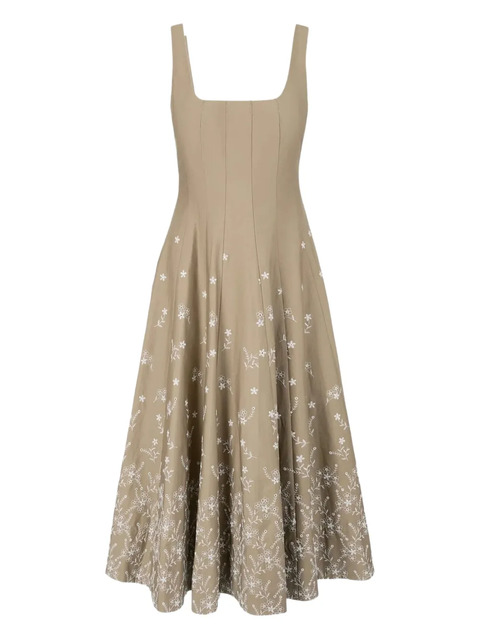 taupe brown floral embroidery square neck sleeveless zip fastening panelled construction