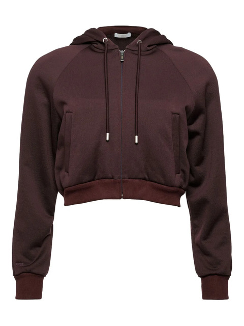 brown cropped length zip fastening fitted cuffs raglan sleeves