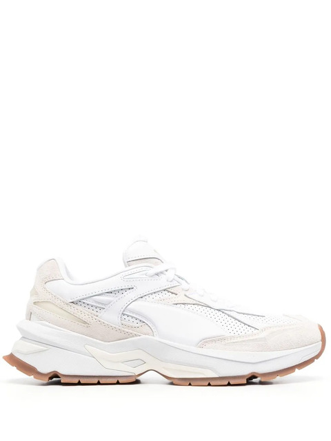 white calf leather suede panels almond toe front lace-up fastening logo-embossed tongue rubber sole
