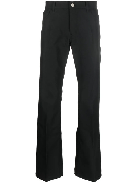 jet black recycled polyester/Bemberg™ cupro low-rise embroidered logo to the rear belt loops concealed fly and button fastening classic five pockets straight leg
