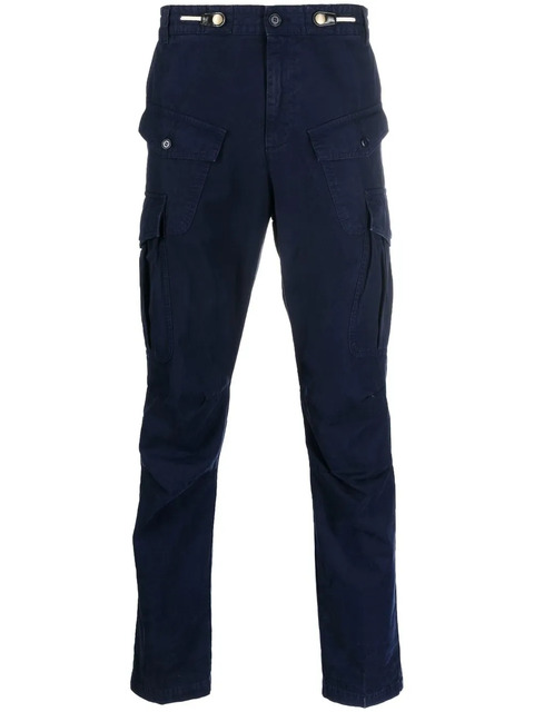 blue cotton multiple cargo pockets button fly fastening straight leg