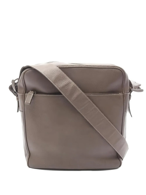 2000s brown leather top zip fastening adjustable shoulder strap logo plaque internal zip pocket