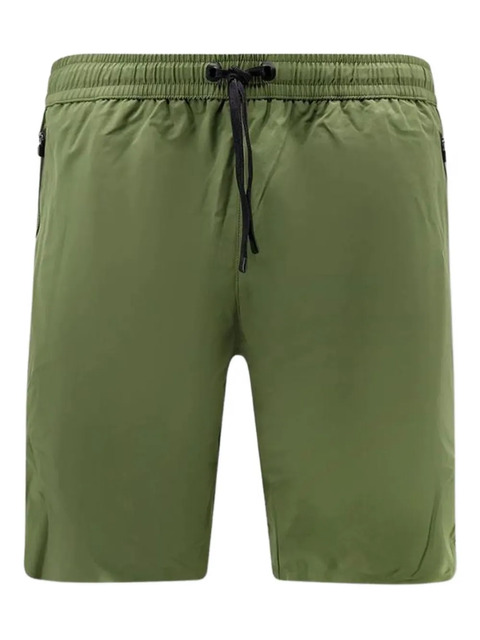 green drawstring fastening elasticated waistband side zip pockets rear zip pockets logo patch Be mindful to try on swimwear over your own garments.