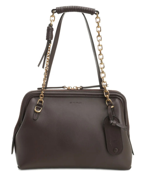 brown chain detail top zip fastening top handle tag internal slip pocket