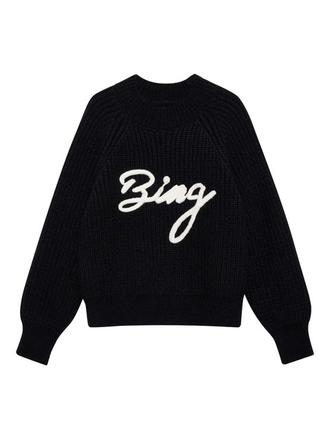 black logo lettering round neck long sleeves ribbed knit