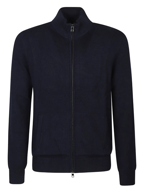 midnight blue zip fastening high neck long sleeves ribbed trims