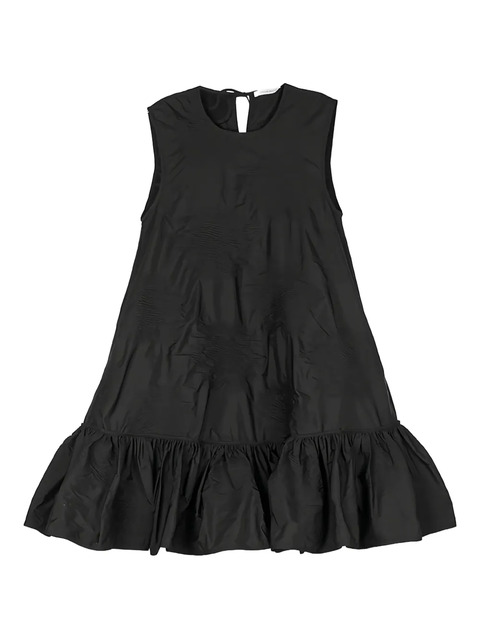 black jacquard pattern ruffled hem sleeveless rear tie fastening round neck