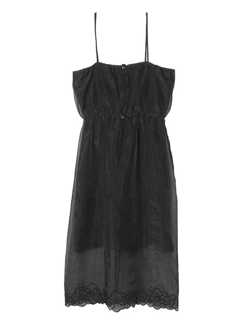 black spaghetti straps drawstring fastening scalloped hem button detail sheer finish