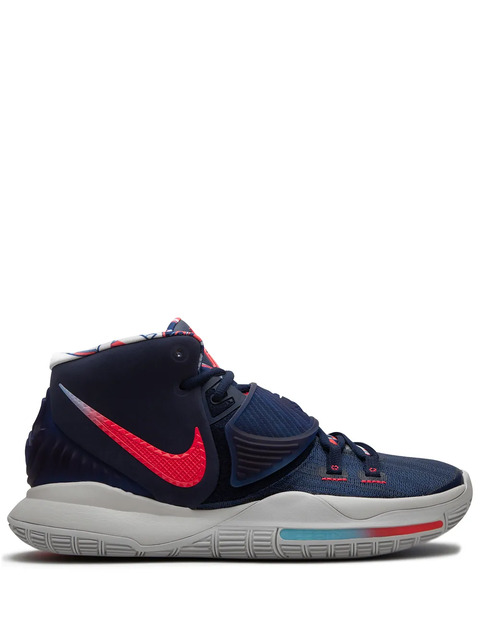 Supplied by a premier sneaker marketplace dealing with unworn, already sold out, in demand rarities. Each product is rigorously inspected by experienced experts guaranteeing authenticity. Kick back in style. You probably didn't know your sneaker collection was missing these midnight navy and gym red Kyrie 6 sneakers from Nike. Hit the ground running. Featuring a round toe, a flat rubber sole, a lace fastening, a branded insole and a signature Nike swoosh.